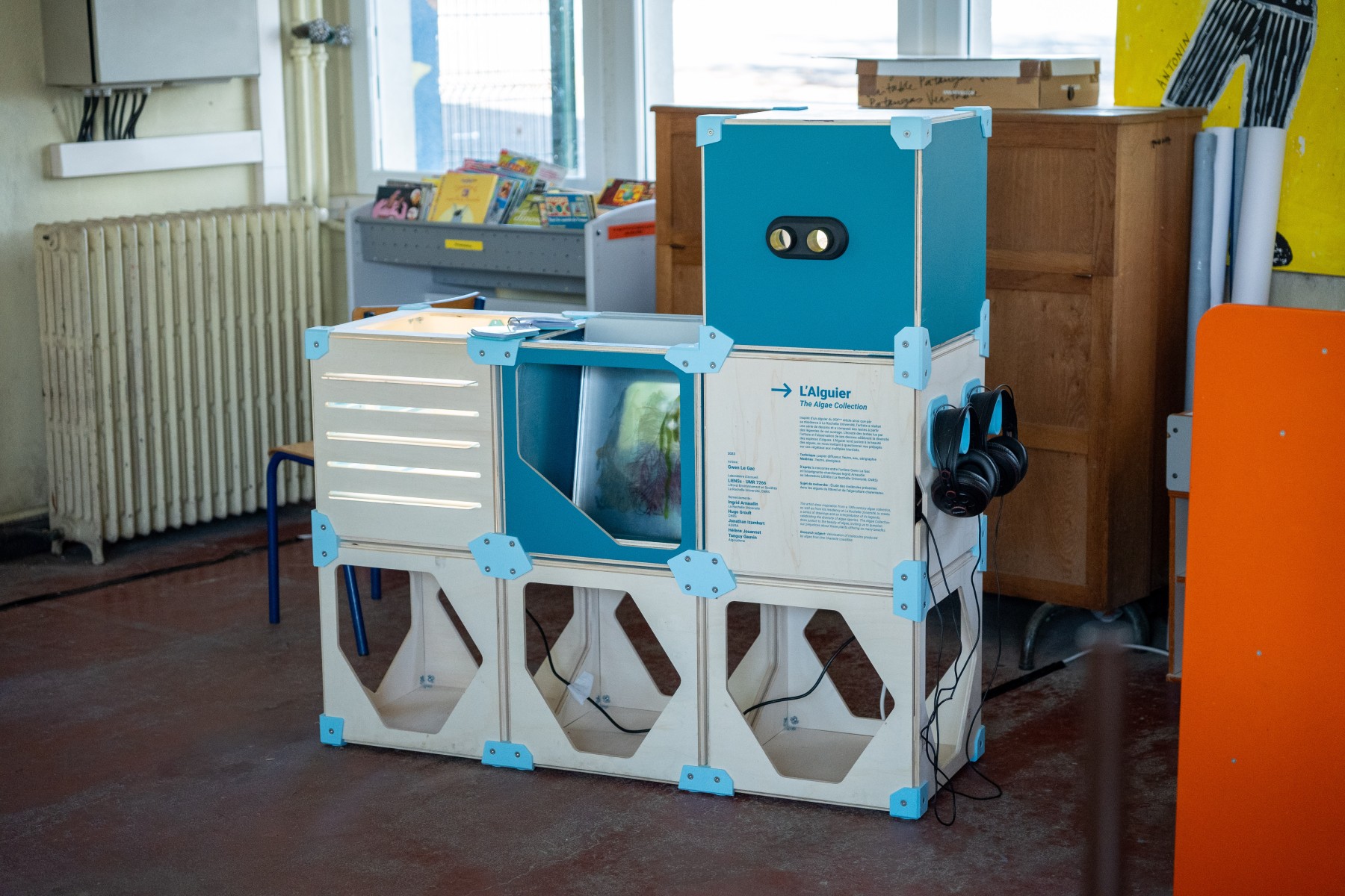 Pour concevoir son module, Gwen Le Gac, artiste d’origine bretonne, s’est inspirée d’un alguier du 19e siècle : Algues marines du Finistère rédigé par Hippolyte et Pierre-Louis Crouan et publié en 1852. Il s’agit d’un herbier d’algues qui rassemble 404 échantillons d’algues d’espèces différentes du Finistère.