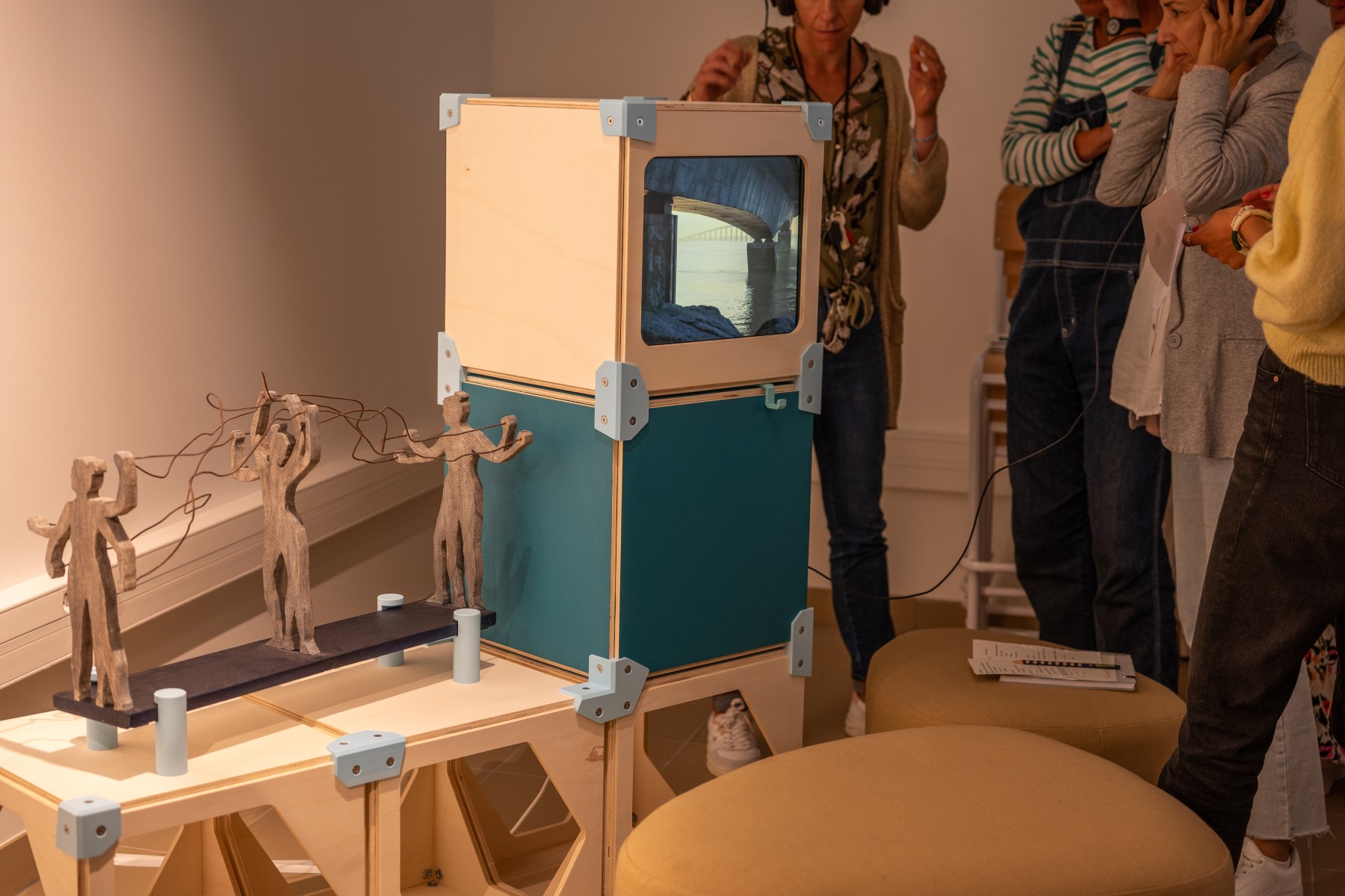 “La rencontre avec les scientifiques a été déterminante pour comprendre leur travail. À la fin de notre rencontre, nous avons notamment discuté de notre rapport à la nature et de comment celle-ci par le vent, les embruns… abimait les structures. Comment le réchauffement climatique accélère la corrosion ? En tant que scientifiques, leur mission est de trouver des solutions pérennes pour construire durablement des infrastructures nécessaires à améliorer la qualité de vie de l’homme. Cette discussion a été notre point de départ, puis c’est un dialogue sans interruption qui s’est créé entre nous : sur notre rapport au temps, à la nature, à la manière dont nous, êtres humains devons protéger notre planète en ayant en tête que nous ne sommes que de passage sur terre. L’idée du pont, de la transmission et des silhouettes, s’est très vite imposée. Ces échanges nous ont nourris et nous ont donné envie de positionner directement notre travail comme un complément du leur. » Pauline Rolland et Yuri Zupancic